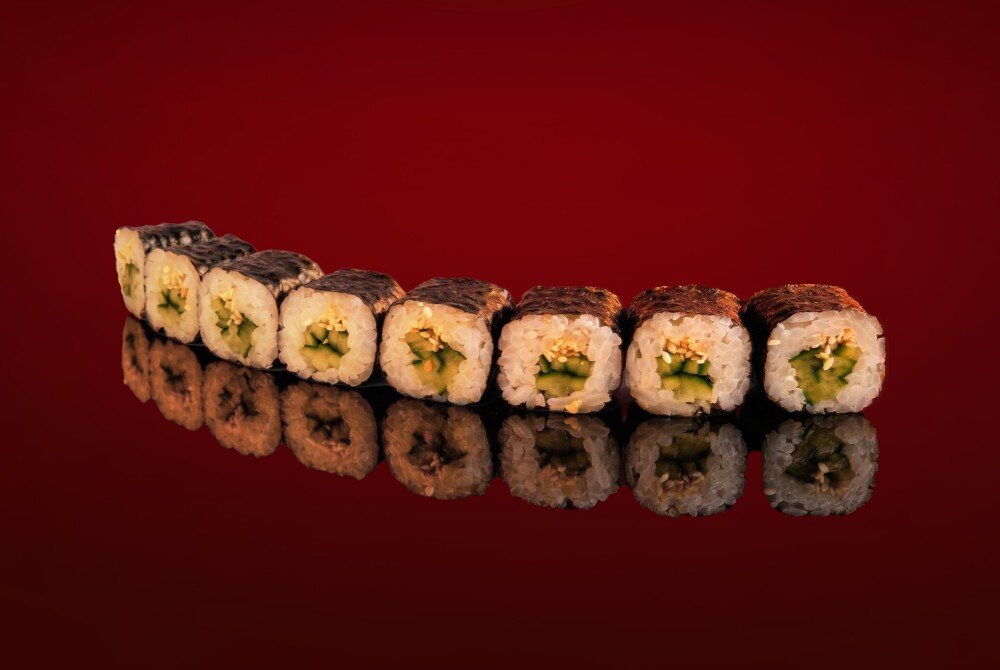 Рис для суши, огурец, семена кунжута белые